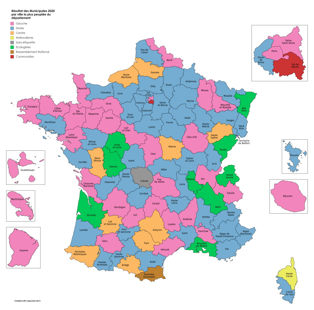 Les écologistes ont donc emporté beaucoup de grandes villes, mais la droite a bien tenu et s’est relevée après les échecs de la présidentielle de 2017 et des européennes de 2019, malgré la perte de Bordeaux et probablement de Marseille. Le Parti Socialiste s’est aussi réaffirmé au niveau local après sa chute depuis 2017. Enfin, le parti présidentiel, La République en Marche, a connu un lourd échec, notamment à Paris.