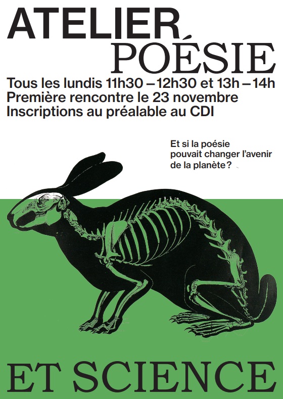 Je vous conseille l’atelier « Poésie et Science » car vous pourrez y écrire des poèmes avec un écrivain, en lire avec une comédienne et faire une représentation théâtrale avec un metteur en scène.
