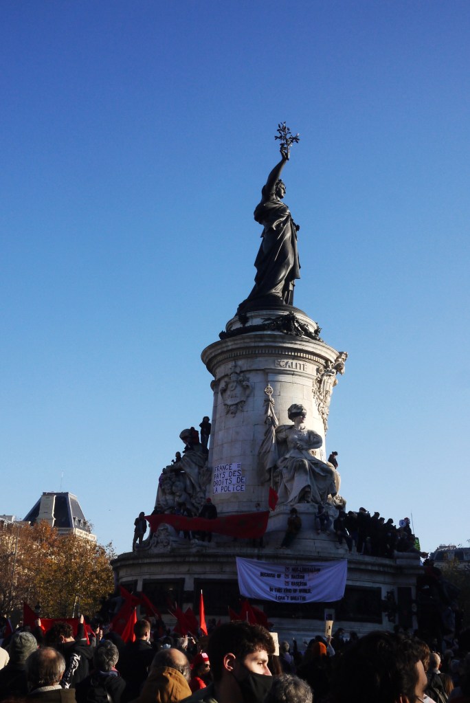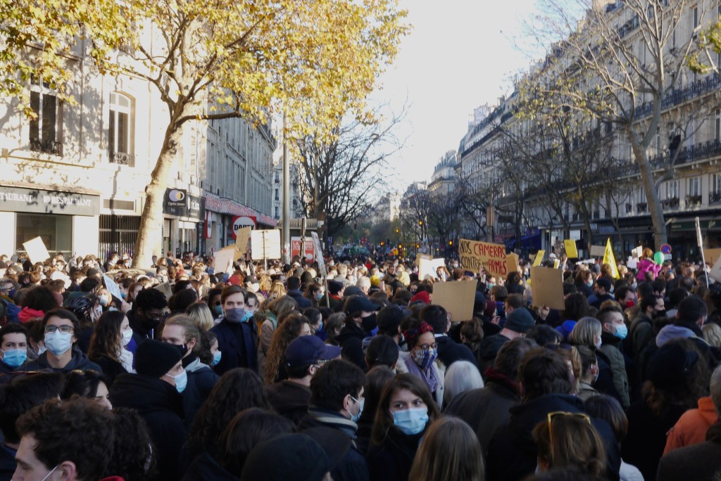 Je suis allée à la manifestation contre la loi « sécurité globale » limitant la diffusion de photos et vidéos de policiers. Selon la police le nombre de manifestants était de 130 000 en France et selon les organisateurs 500 000. Selon moi, ce n’était pas qu’une manif contre la nouvelle loi, mais aussi une manif contre les violences policières.