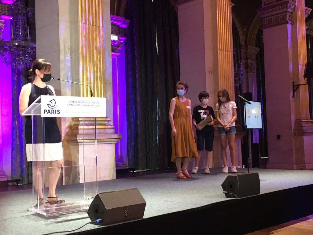 Après nous sommes arrivés dans une autre salle remplie de chaises (toujours pas climatisée – nous étions des dizaines imaginez un peu la chaleur corporelle se dégageant dans la la salle !). Vers 14h30 la remise des prix a commencé ! Enfin une dame du nom d’Hélène Bidard, ajointe à la mairie de Paris, a pris la parole pour un discours. Au moins il était simple et encourageant. Elle a cité plusieurs villes de France (quand je dis national c’est pas une blague) dont Paris et notre collège a été indiqué.
