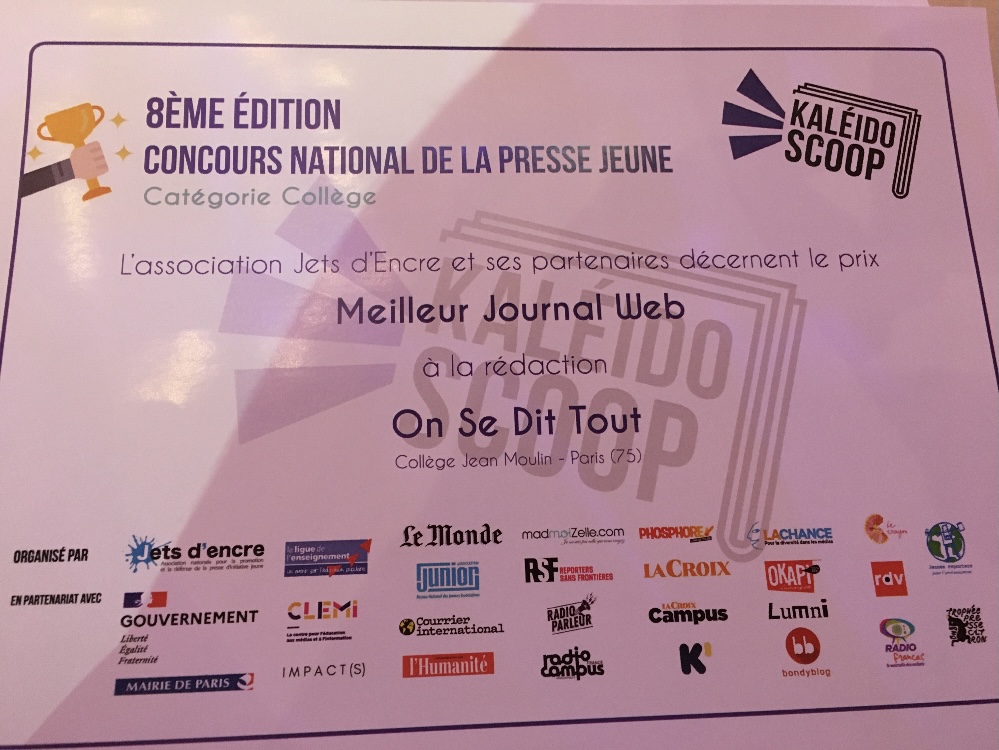 Reprenons tout depuis le début ! Notre journal s’est inscrit au Concours Kaléïdo’scoop. Cette compétition comporte un jury votant pour le meilleur des journaux dans différents groupes :