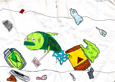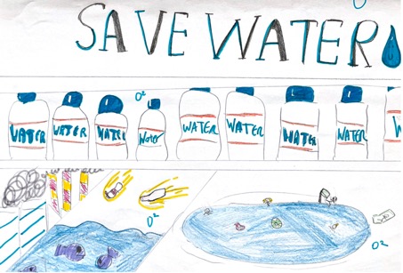 This poster is about water. Water is essential for humans. But because of us it is polluted. And some water animals are dying, like turtles, sharks and fishs. Ice is melting so white bears don’t have enough space.