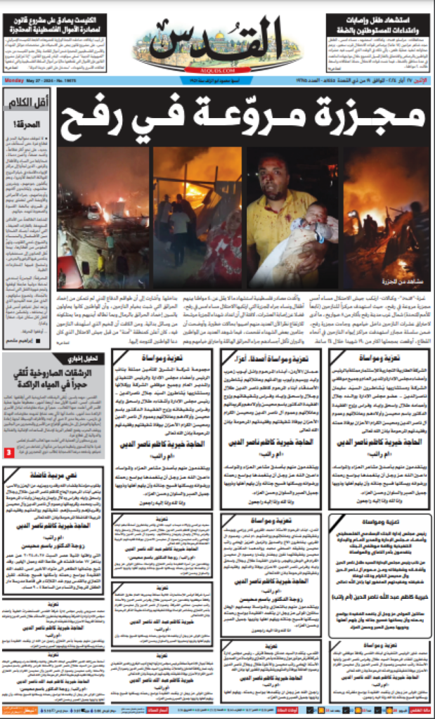 Ce camp abritait de nombreux déplacés du nord de l’enclave, s’entassant dans des abris de fortune et des tentes qui ont brûlé lors de l’attaque aérienne israélienne. Les images qui circulent sur les réseaux sociaux montrent des cadavres calcinés, des enfants brûlés ou mutilés et d’autres horreurs.