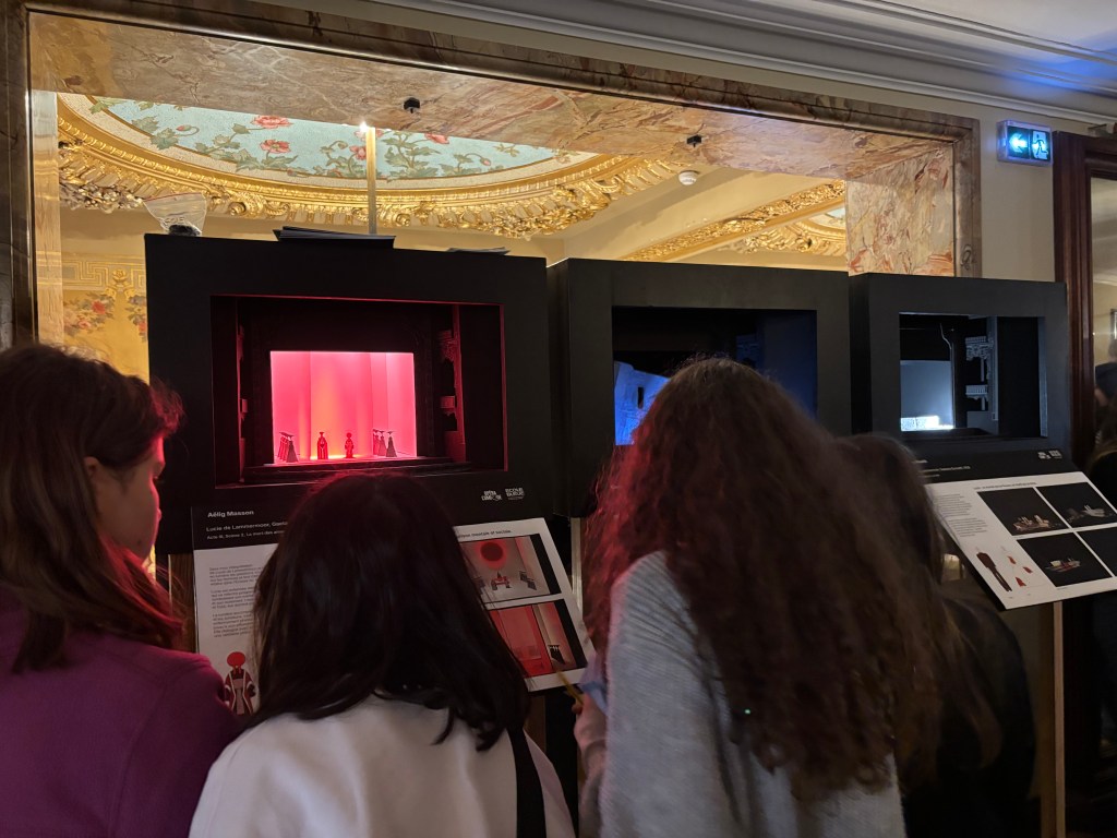Les scénographes que nous avons rencontrées étaient des étudiantes de l’École Bleue, une école parisienne d’architecture. Elles ont réalisé des maquettes de décor pour la pièce Lucie de Lammermmor. Quand elles visualisent la pièce, elles demandent des informations aux acteurs et metteurs en scène pour mieux pouvoir inventer.