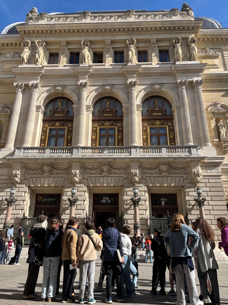 Ce vendredi 10 avril 2026, nous sommes allés à l’Opéra Comique. Il est situé place Boieldieu dans le 2e arrondissement de Paris.