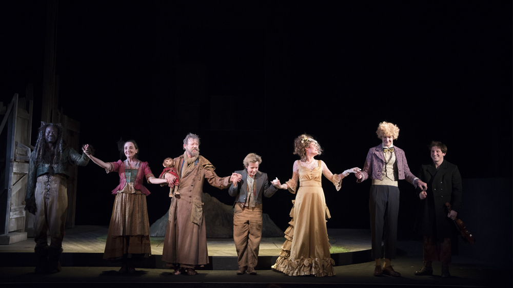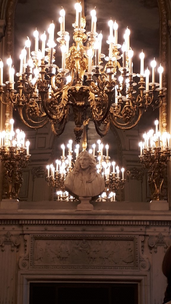 J’ai trouvé ça très drôle. Les acteurs (ils sont seulement 6 sur scène) jouent énormément avec la salle, par exemple quand ils s’adressent aux spectateurs assis tout en haut (au poulailler) ils les appellent « les pauvres » et ils se moquent gentiment d’eux. Je pense qu’il y a une part d’improvisation chaque soir selon les réactions des spectateurs. Le jeu des acteurs est très comique.