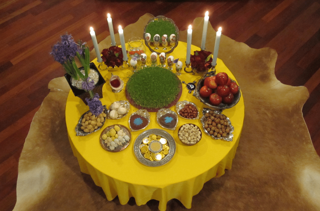 Table traditionnele de Norouz / photo Mandana Asadi, CC BY-SA 3.0, via Wikimedia Commons