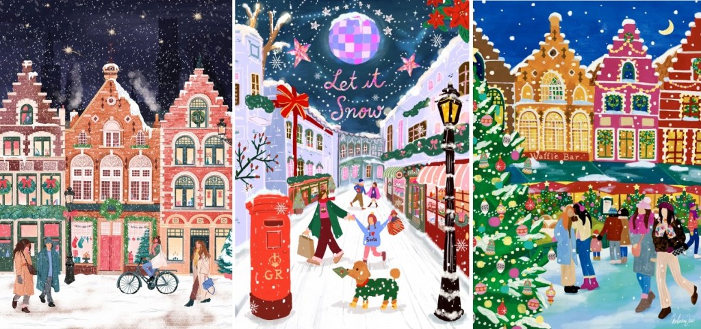 Ils sont illustrés par 38 dessinateurs et dessinatrices avec des styles très différents, ce qui rend ces puzzles tous plus singuliers les uns que les autres. Ils sont vraiment magnifiques et très colorés. Et, en plus, les fabricants ont une collection de Noël avec plein de puzzles que vous pouvez tous aller voir sur leur site (il y a aussi des informations sur les dessinateurs).