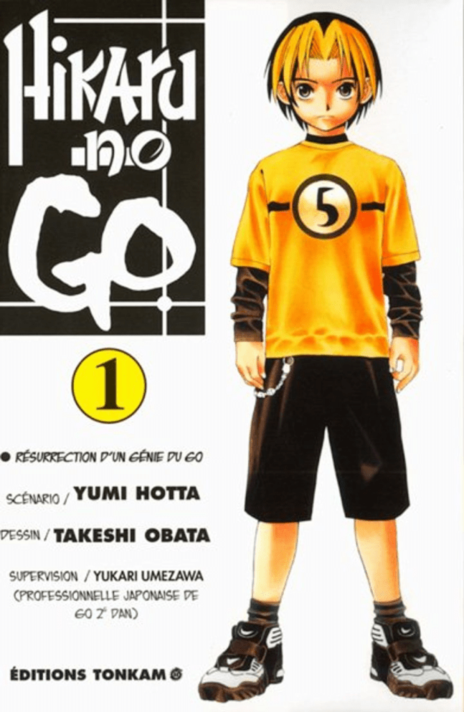 Hikaru no go est un manga en 20 tomes, écrit par Yumi Hotta et dessiné par Takeshi Obata. Il a été édité au japon en 1999 par la Shueisha et en 2003 en France par Tonkam.