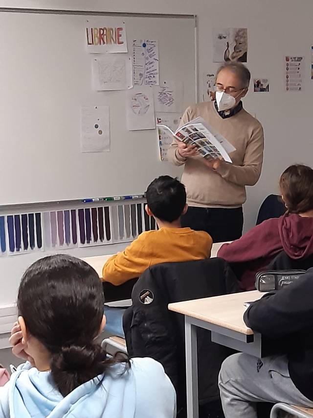 Dans le cadre du projet Jeunes en librairie auquel notre classe participe cette année, nous avons reçu mardi 31 janvier Laurent Sachet, le propriétaire de la librairie « la Chambre Verte » qui se trouve à proximité du collège