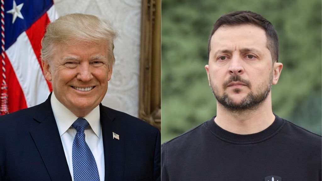 Donald Trump à gauche et Volodimir Zelensky à droite